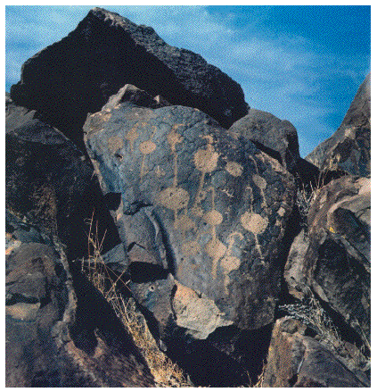 Many of the early petroglyphs are puzzling and appear very abstract to us. They have either angular or curved geometric shapes, and include crosses, circles, dots, spirals, meanders, or grids. Some symbols are suggestive of human-like or anthropomorphic figures, and others are suggestive of animal or animal-like images.