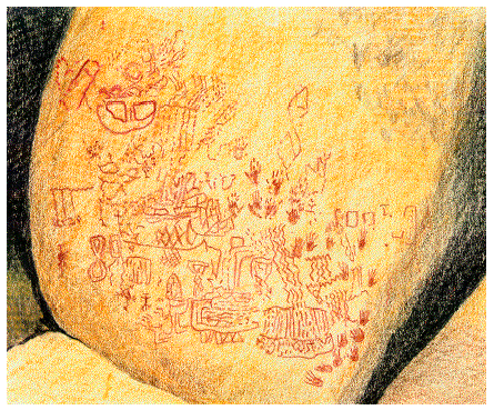 Boys and girls participated in puberty ceremonies when they reached adolescence. They were taught about the supernatural powers and taboos, to be respectful and polite to their elders, to refrain from anger, and the consequences of wrong behavior. During the ceremonies, sand paintings were created to illustrate the Luiseno conception of the universe, the night sky with the Milky Way, sacred beings, and the spiritual component of the human personality. At the end of the puberty ceremony the sand paintings were destroyed. Girls raced to a rock where they painted angular and diamond shaped designs. Some of the rock paintings can still be seen today. This style of painted rock art is called San Luis Rey Style by Ken Hedges of The Museum of Man in San Diego.